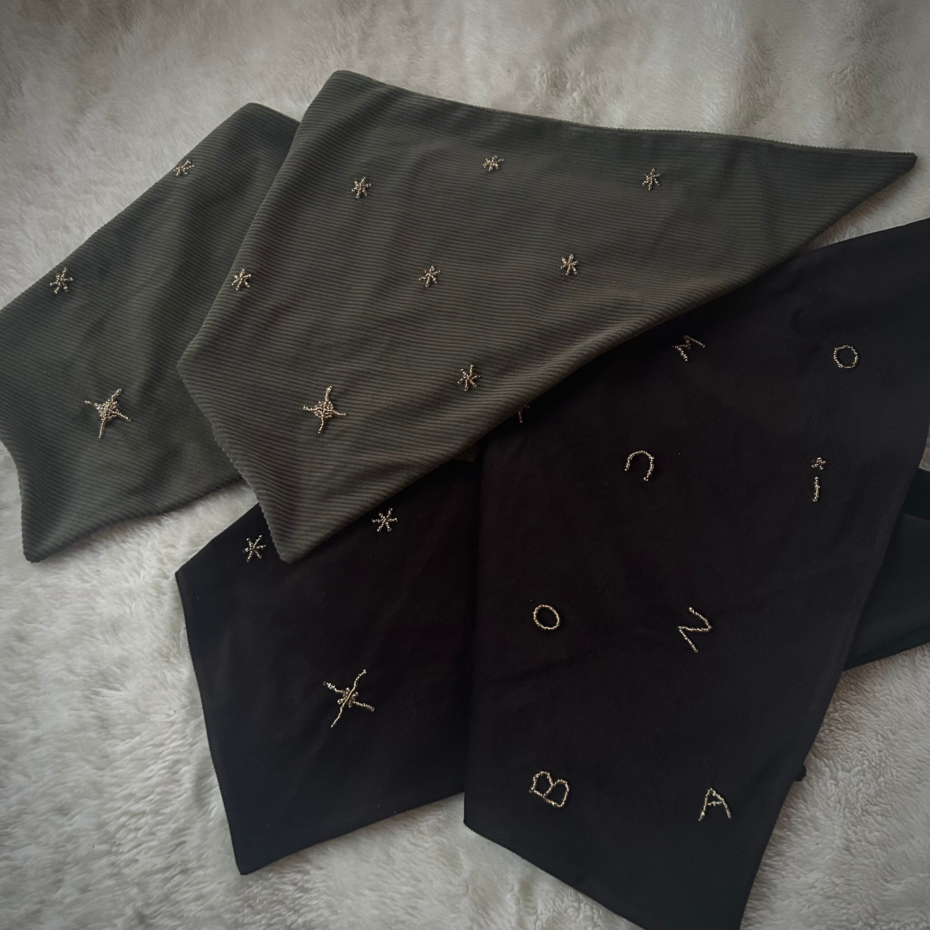星に見立てて手刺繍で一粒づつ縫い付けました