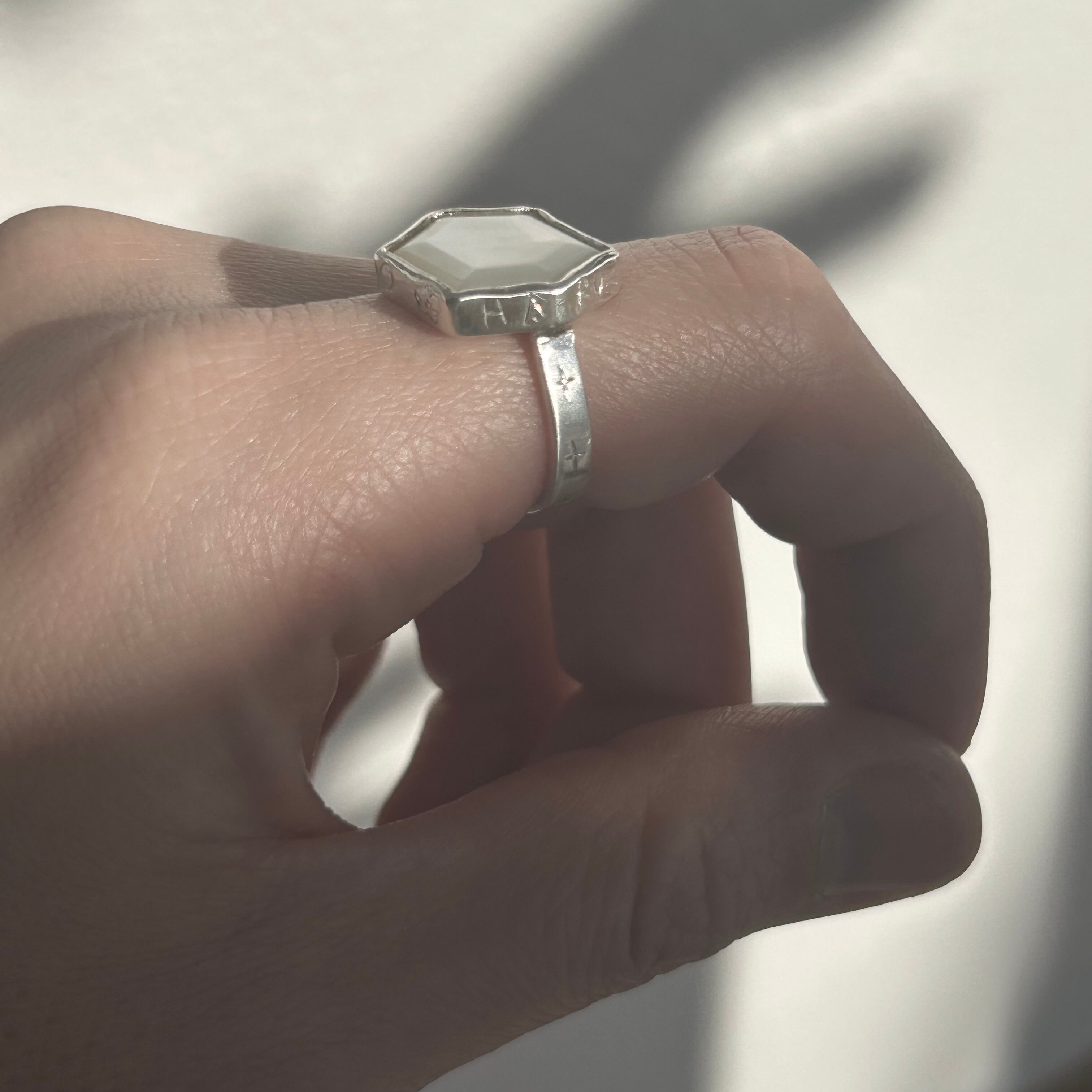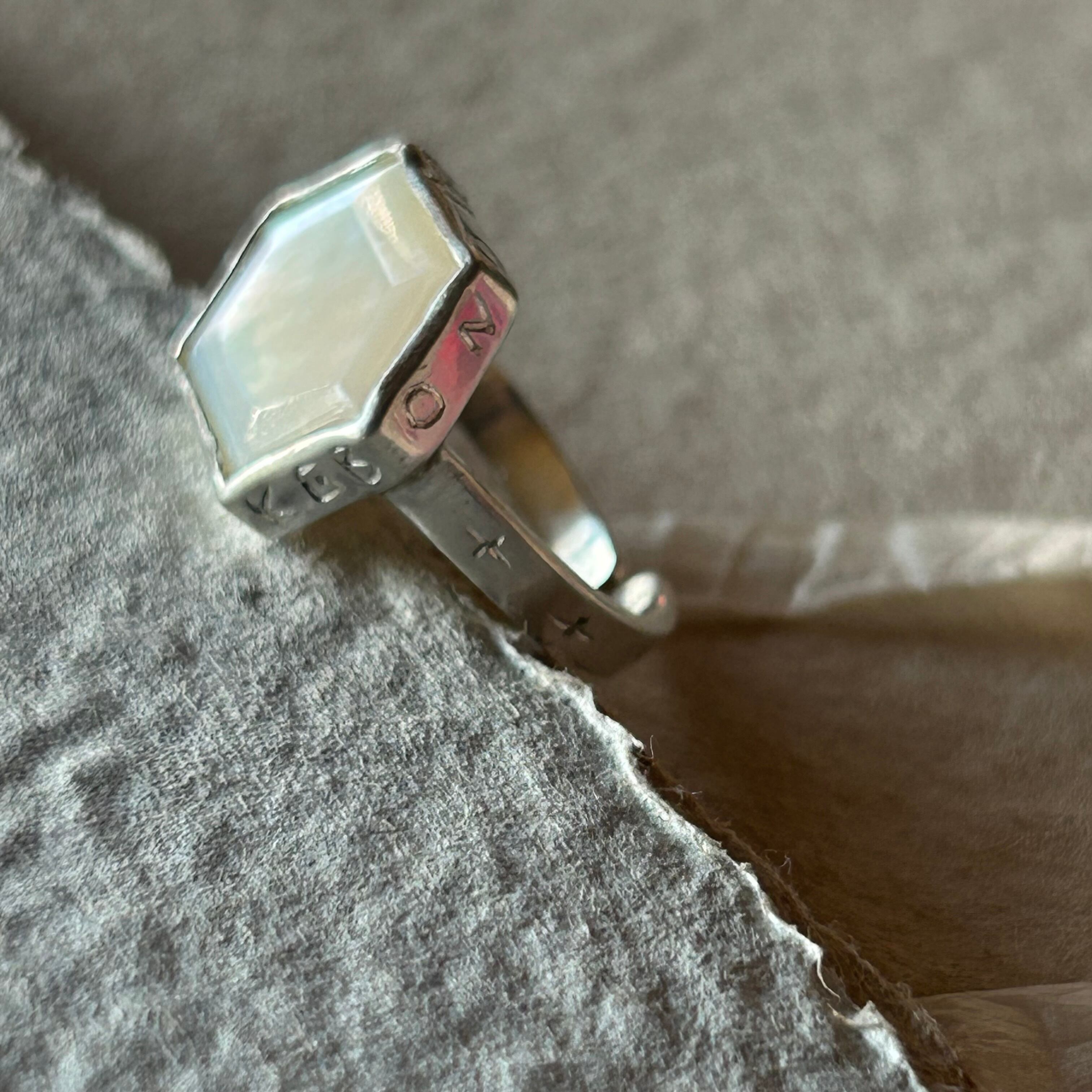 フリーサイズですが、リング部分を大きく動かすと貝を留めている部分も多少動いてしまい外れやすくなってしまいます。