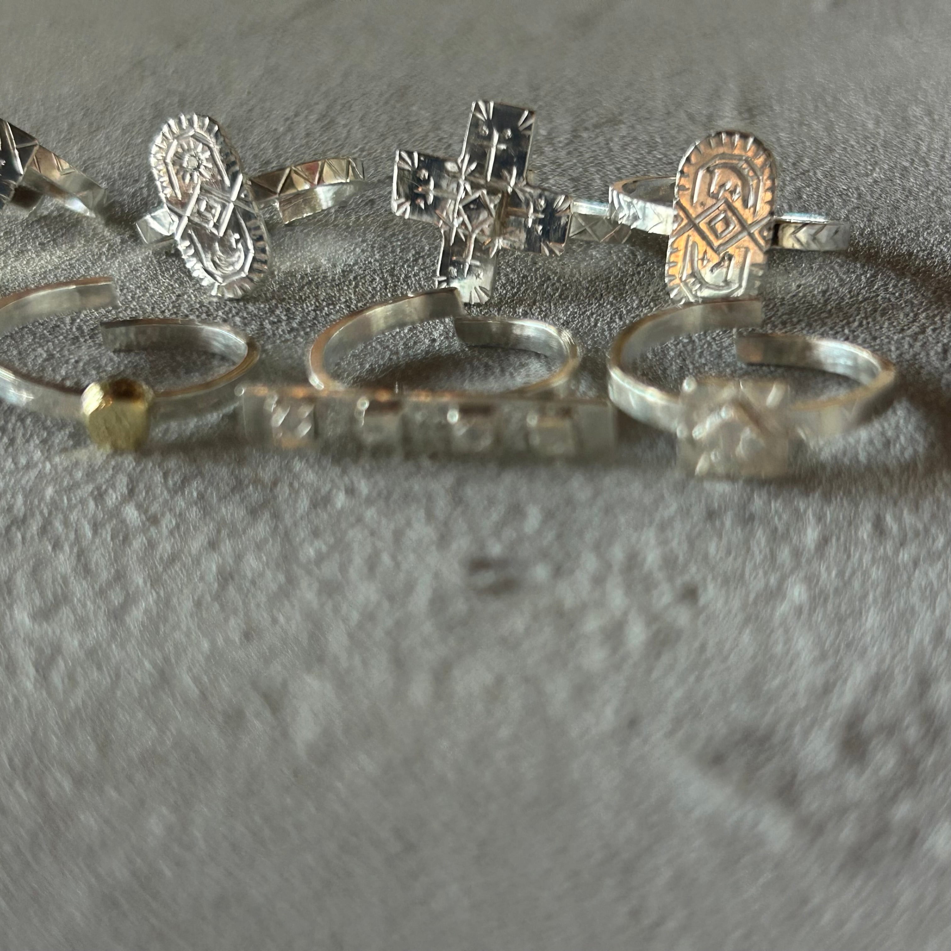 象徴的なモチーフを一つ一つ彫り込んだリングです。